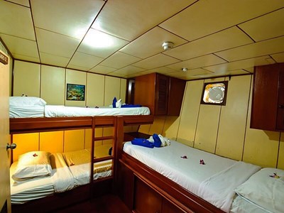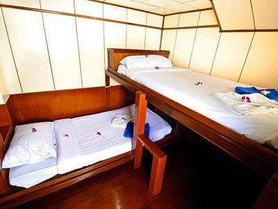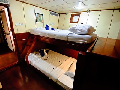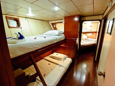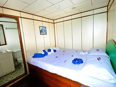 MV Deep Andaman Queen is a brand new liveaboard built in 2012, she has air conditioned cabins with private bathroom. She has a variety of cabin configurations to suit our guests’ requirement from quad, triple and twin shared standard cabins on the lower deck, to Deluxe Double bed and Twin beds cabins on the main deck.