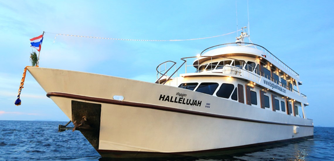 M/V Hallelujah is a 35 m long steel boat covering the Similan Islands, Koh Bon, Koh Tachai and Richelieu Rock. She can take 24 divers in fully air-conditioned twin or double bed cabins with en-suite facilities.