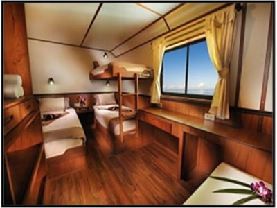 - All ensuite cabins are on main deck and upper deck have amber storage space for luggage with camera table. A spacious toilet with hot water shower. Aircon with individual control , cabin also have large window that can be open